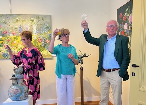 Zondag 6 juli was de officiële opening van de nieuwe expositie door de voorzitter van Galerie Het Oude Raadhuis, Sjoerd Bronsgeest en de voorzitter van de Volksuniversiteit Teylingen, Nicolette Wijling.